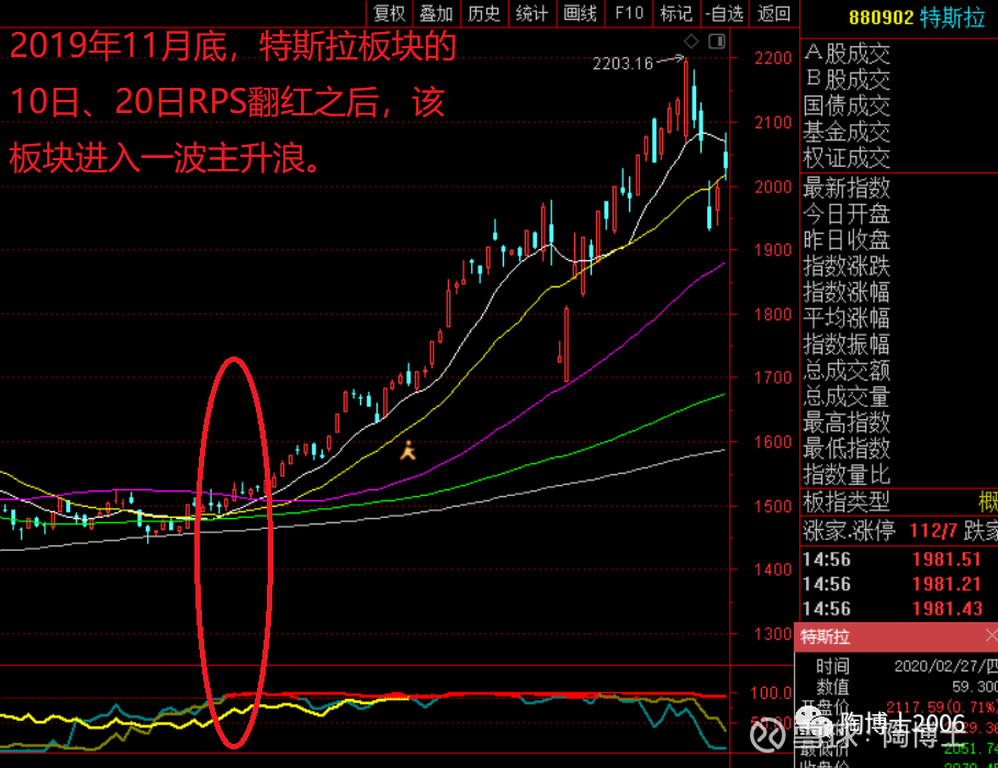 2019年11月底,特斯拉板块的10日、20日RPS翻红之后,该板块进入一波主升浪。