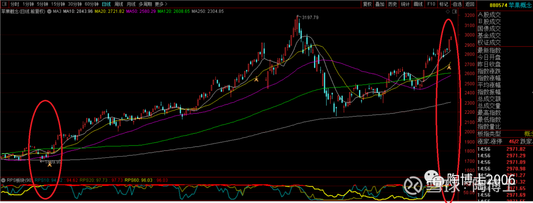 2020年6月18日,苹果概念板块指数的10日、20日和60日的RPS都呈到达90以上的红色。后期走势如何,师母已呆!