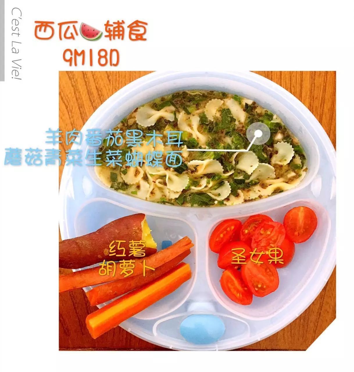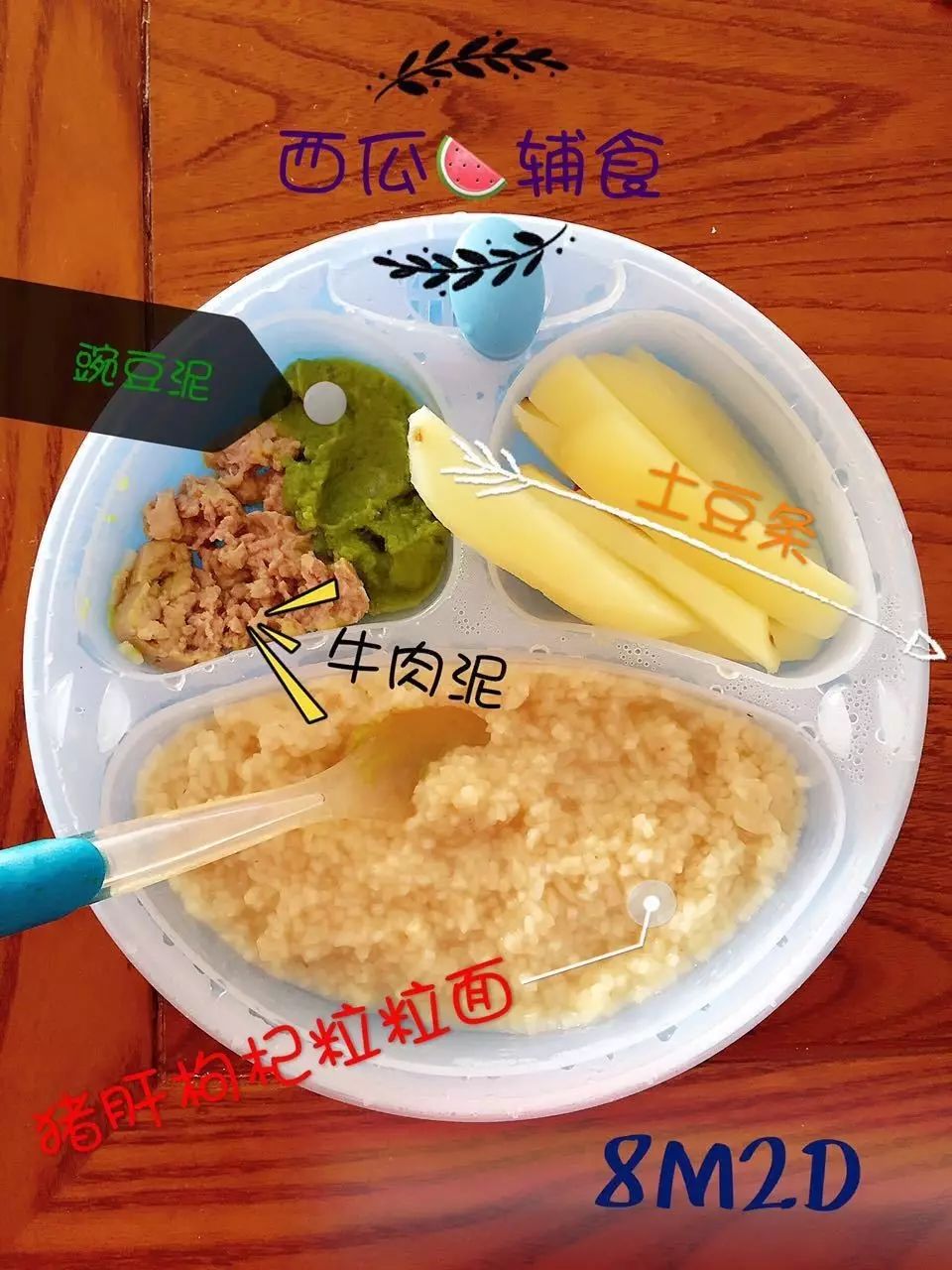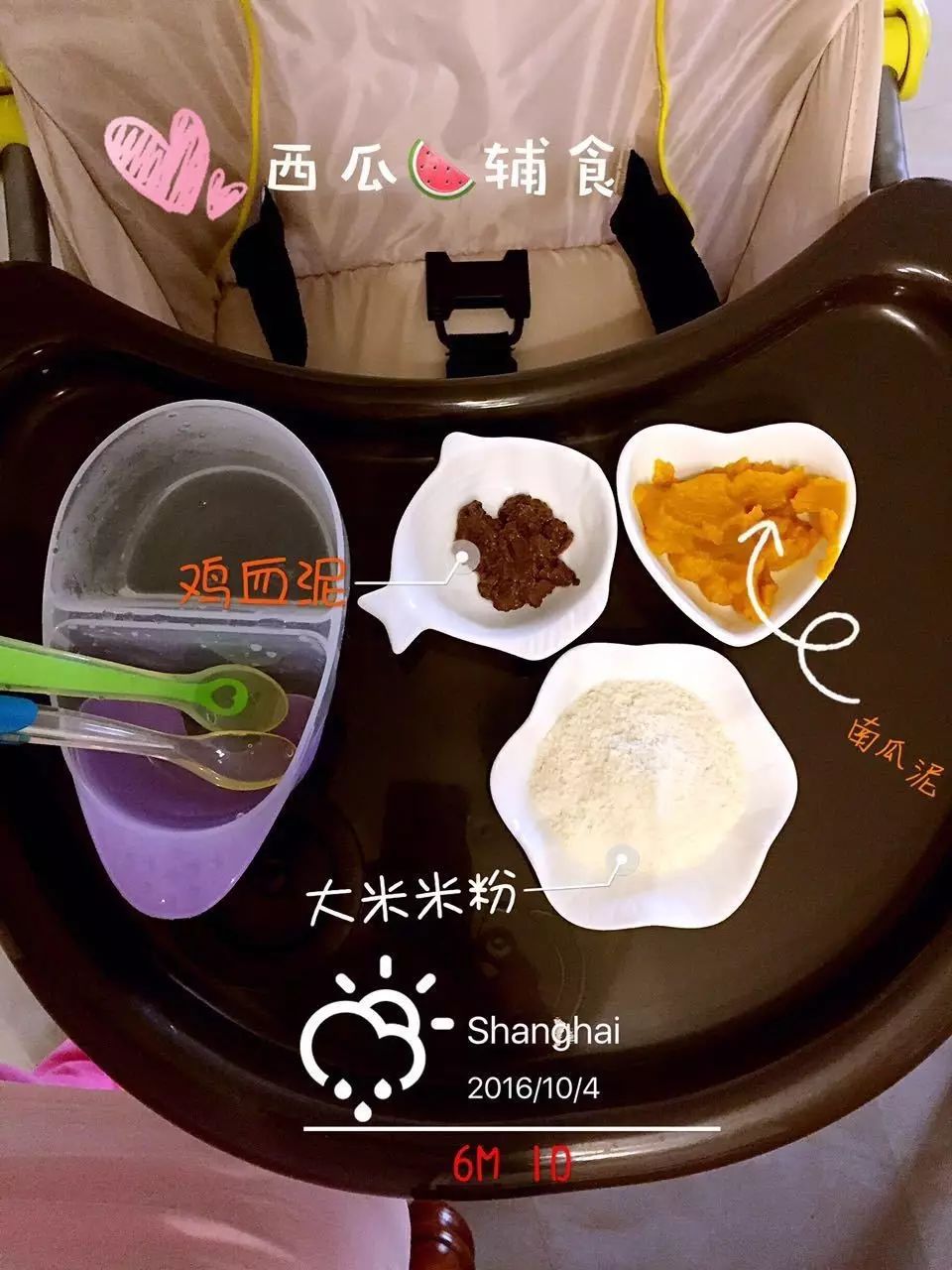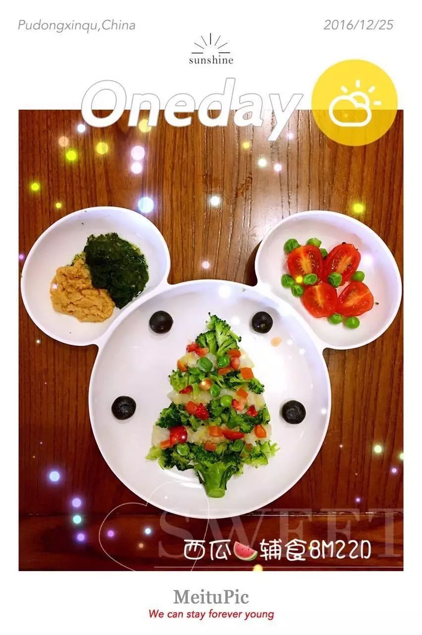 文章中出现的西瓜的辅食照片,大家看了也不要焦虑,我只是偶尔周末有空的时候才拍拍的,而且和拍摄技巧无关,主要是最后的P图效果,所以美图秀秀还是很必要的。