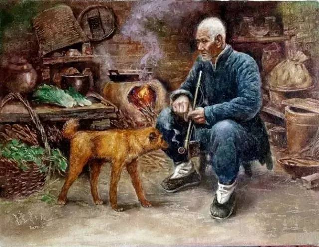 家里的大黄和爷爷的烟杆子,总是形影不离。