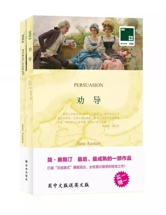 美国电影《触不到的恋人》中,曾经出现了一本女主角最喜欢的书,那就是简·奥斯汀的《劝导》。《劝导》作为奥斯汀的最后一部作品,或许不如《傲慢与偏见》那样脍炙人口,但无疑是她最为成熟的一部作品,其中有关女性婚恋的论述尤为经典。小说描述的是一段曲折多磨的爱情故事,男女主角曾是青梅竹马的恋人却因社会地位而被迫分手,之后女主角安妮苦苦等待八年才真正地排除万难结成良缘。