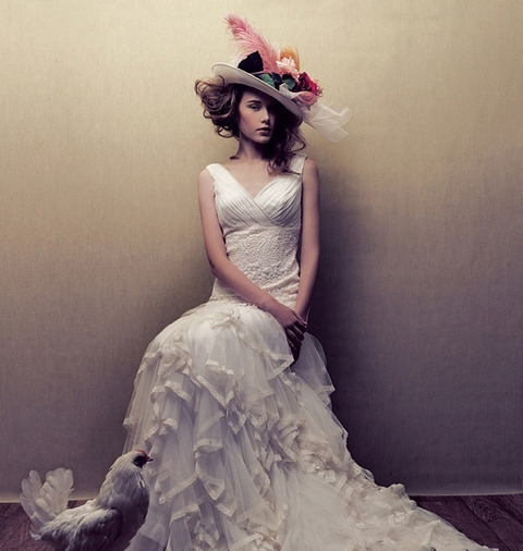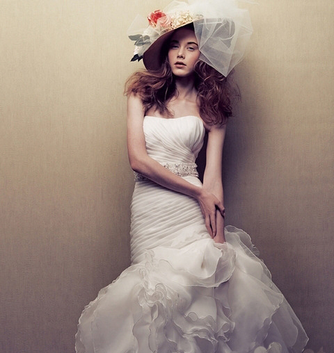 帽式头纱透露出一股狂野的青春气息,如同林间奔走的吉普赛女郎,清新自然。