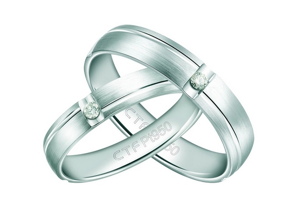 周大福 铂金镶钻对戒“Perfect Love”系列“相恋”