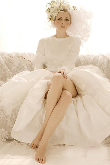 鬼魅的蓝紫色花朵和纯白的蕾丝,打造出新娘不食人间烟火的气质。