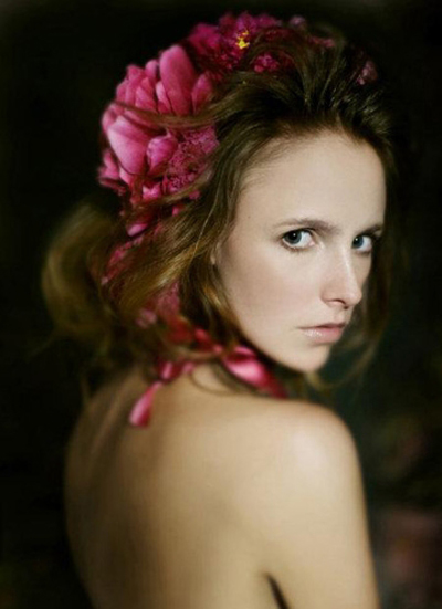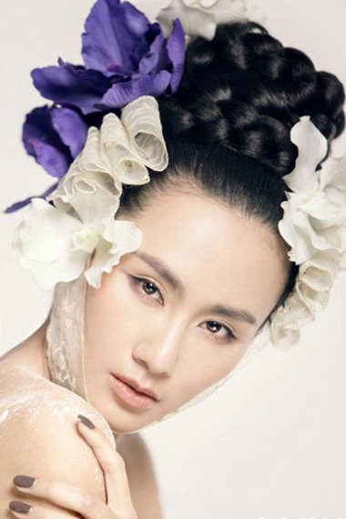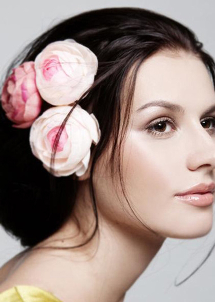 不需要繁复的发型,只需要简单的几朵小兰花就可以造就最美的田园新娘。