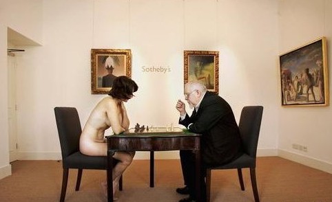 4、重现杜尚博弈。2007年2月1日,英国伦敦索斯比拍卖行(SothebysAuctionHouse),艺术家皮特·布莱克(PeterBlake)和女演员卡罗尔·霍尔特(CarolHolt)重现了当年著名画家马赛尔·杜尚(MarcelDuchamp)和裸体女模特伊夫·贝比兹(EveBabitz)下棋时的情景。由杜尚本人制作的原始棋盘将于2月5号在索斯比拍卖行进行拍卖,价格将达到20万英镑。