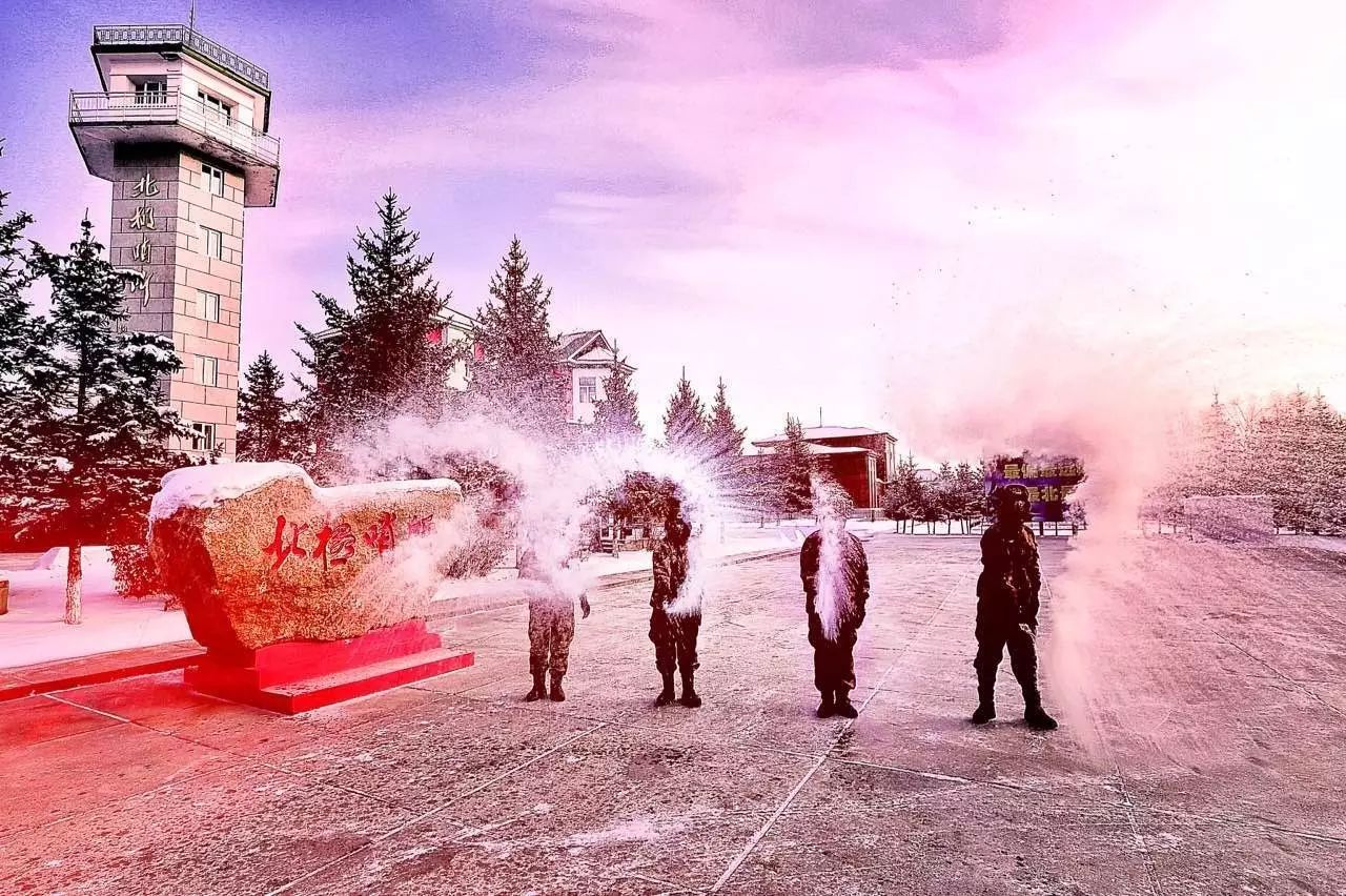 一位战士想喝牛奶,却发现饮料已冻成了冰块,只能撕开包装用嘴唇的温热去暖化。