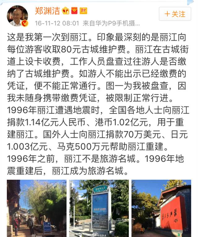 郑渊洁的质疑引发网友大讨论,因为#丽江打人事件#风波未过,网友对丽江古城的管理也更加关注: