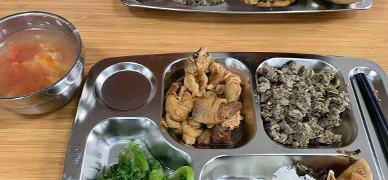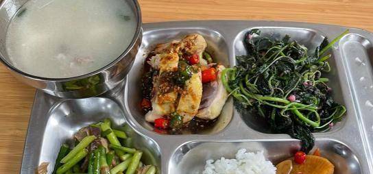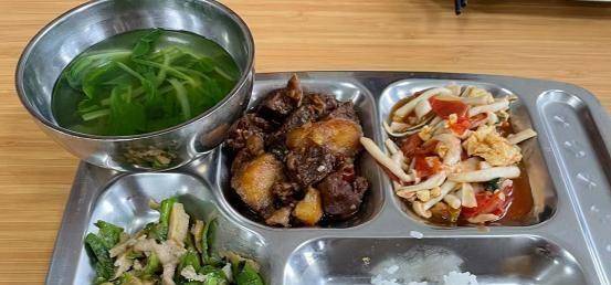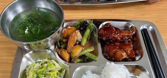在晓冉晒出的第二张餐食里,还表示了食堂做饭的大叔,每天都在尽力的做不重样的菜品。有包菜丝炒肉,看起来就很健康的一道菜,地三鲜,东北菜,即使在南京的食堂也可以吃到东北有名的菜肴,糖醋鱼做的非常诱人,看起来汤汁浓郁,最后还有蔬菜汤,饭后喝一碗清爽解腻。