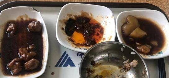 晓冉晒出闺蜜私企的餐食中,只有三盘菜,每个盘子不大,菜品不仔细看还看不出来是什么,都属于“浓油赤酱”的类型。依稀客编的是红烧茄子,看起来油和盐不轻,搭配米饭的话应该十分的下饭。其次还有一小盘子的红烧土豆,没有其他的配菜,显得很单调。