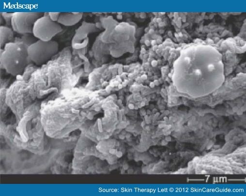 Acne affects approximately 45 million individuals in the United States with most patients aged 12–24 years old, where the prevalence has been shown to be as high a s 85%.[30] Evidence for the presence of biofilms in acne is predominantly derived from the ability of Propionibacterium acnes (P. acnes) to form biofilms both in vitro and on implanted medical devices. In addition, sequencing of the P. acnes genome reveals the presence of genes involved in the production of EPS and QS molecules.[31] P. acnes strains isolated from acne patients form biofilms in vitro that are characterized by increased lipase activity as compared to planktonic organisms.[32] This may explain a pathogenic role for P. acnes biofilms in acne, as lipase is not only a well known virulence factor, but it also produces irritant fatty acids that promote inflammation[33] and enhance P. acnes adhesion to the sebaceous follicle.[34] Keratin plugging has long been considered a key component of acne pathogenesis, and the adhesive properties of the EPS produced by P. acnes biofilms in sebum may be responsible for the tenacious binding of keratinocytes to the infundibular epithelium.[35] The observed clinical trend towards decreased efficacy of topical antibiotics may be explained by their usage over time or by the presence of biofilms, as biofilm-associated P. acnes exhibits increased resistance to commonly used anti-acne agents.[36] In addition, the extended length of treatment necessary for acne to respond to oral antibiotics further suggests that biofilms are a key pathogenic factor in this condition.[37] An in vitro study[32] evaluating multiple anti-acne agents alone or in combination found that only 0.1% triclosan, 5% benzoyl peroxide + 0.5% erythromycin, and 5% benzoyl peroxide + 1% clindamycin were effective in both reducing biofilm mass and killing >99% of biofilm-associated P. acnes. Interestingly, 5% benzoyl peroxide alone was ineffective unless combined with erythromycin or clindamycin, possibly as a result of antibiotics inhibiting protein synthesis and, therefore, making P. acnes cells vulnerable to benzoyl peroxide generated radicals. It should be noted that although 30mM azelaic acid was bactericidal, it did not reduce biofilm mass. Minocycline was the only agent in its class that removed biofilm and displayed the greatest bactericidal effect of all the tetracyclines tested. It has been postulated that the success of isotretinoin therapy may be related to reduction of sebaceous gland size with a subsequent decrease in sebum production, thus depleting the nutrient source for P. acnes biofilm.[35] The effectiveness of photodynamic therapy may also be due to an indirect effect on biofilms mediated by decreased sebaceous gland activity.[38] Future acne therapies may incorporate specific biofilm production antagonists or agents that alter the physical and biochemical properties of the pilosebaceous unit in order to create an unfavorable environment for P. acnes biofilm.[39]