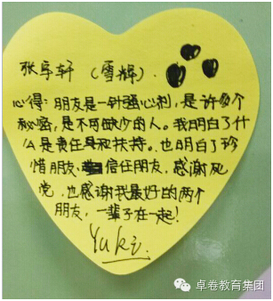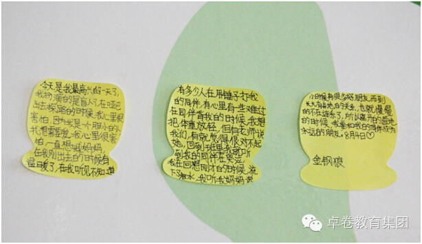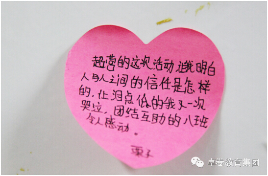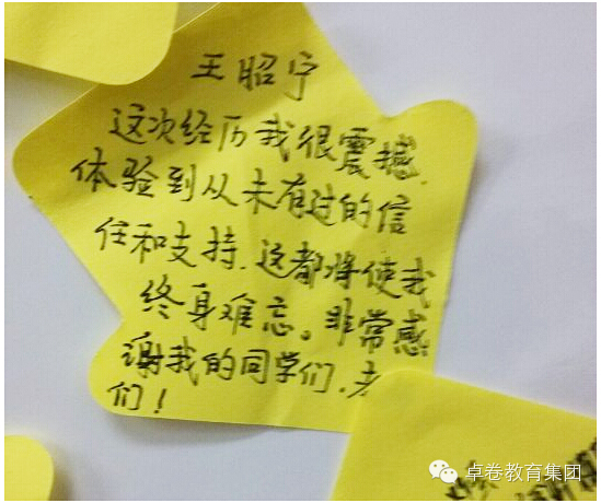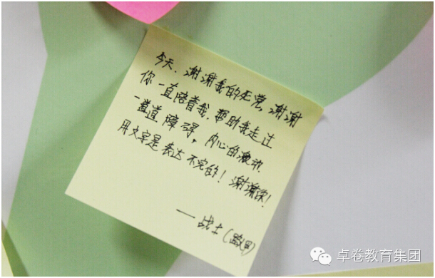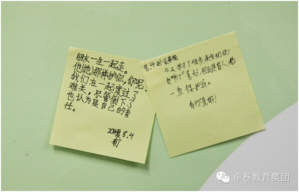成长的脚步匆匆忙忙,我们麻木的随波逐流,抬脚前行成了一种机械式的动作,却常常忘了停下脚步,为每个值得欢欣鼓舞的一刻,举办一场热烈的庆祝和感人的纪念仪式。今天,在卓卷的营地里,我们发现,处处都是成长的印记。除了这些白纸黑字、感人至深的日记,还有天使留言板上花花绿绿的便签,而每一次的响亮掌声和来自同伴的真诚欢呼声,都是庆祝和纪念孩子们一点一滴成长的最好方式。让我们再一次用心去感受孩子们稚嫩笔迹下,透出的突破自我所迸发的勇敢与坚韧。