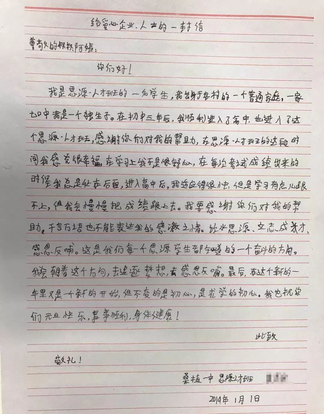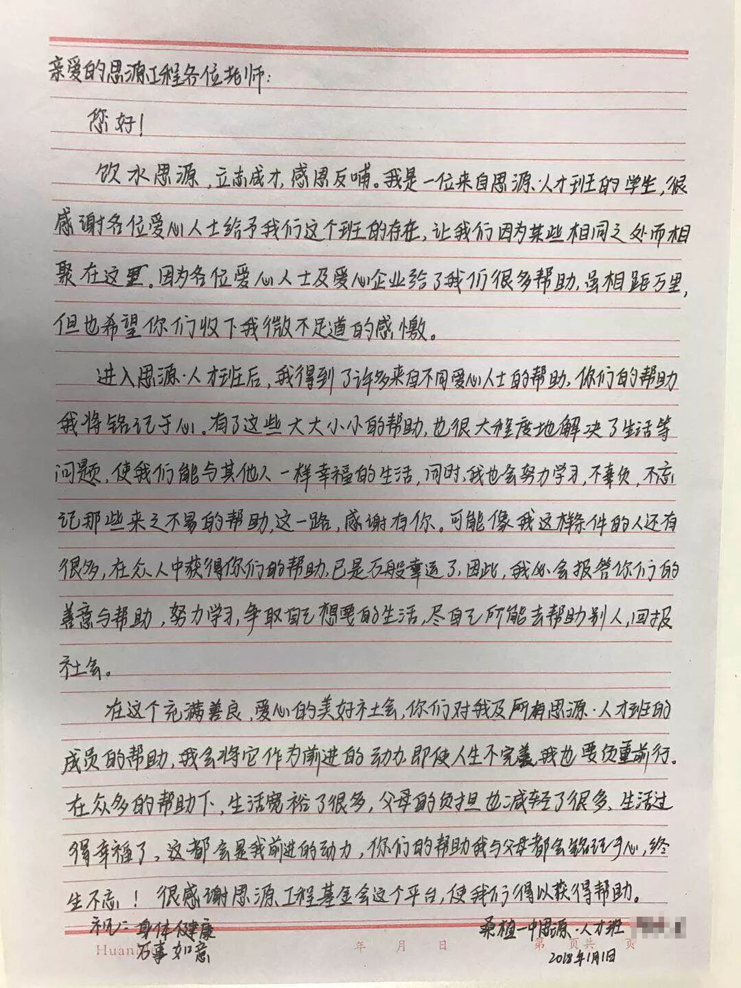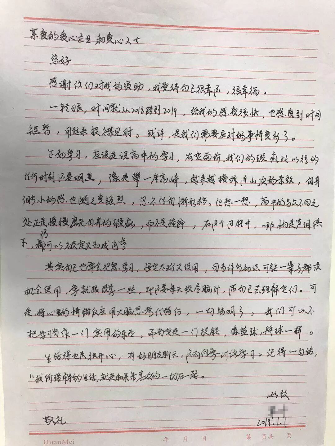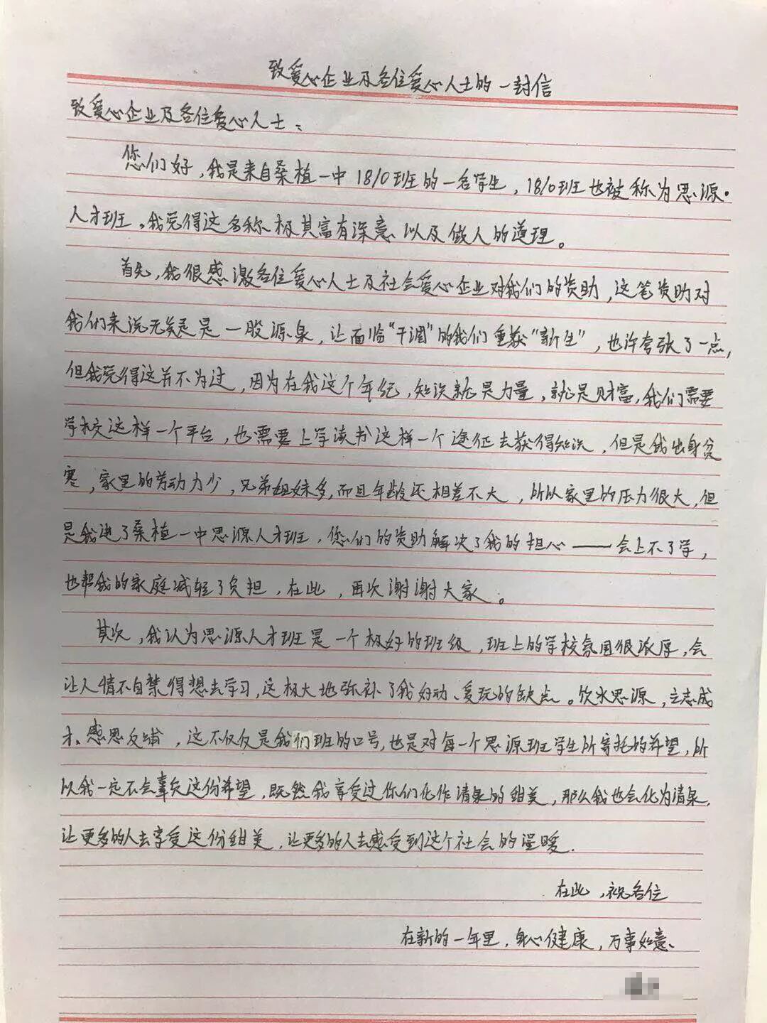 再此,感谢孩子们的来信,希望所有受助的孩子们能通过自己的努力,以积极乐观的态度面对生活,挑战未来,感恩他人,回报社会。