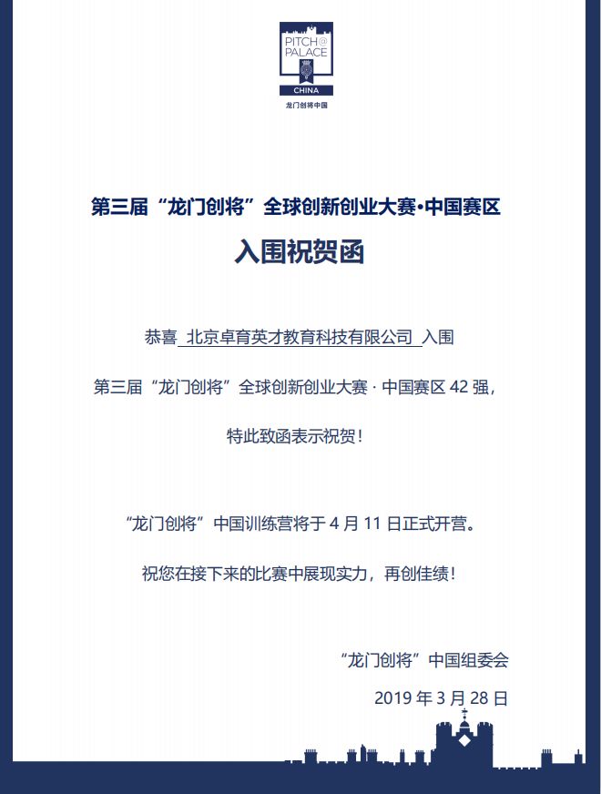 卓育英才凭借在教育行业十余年稳扎稳打的坚持,成功入围。
