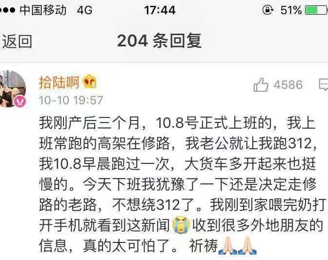 这是我上班的必经之路,因为那条路经常堵车,所以下班后决定走还没修完的老路,才有幸避免这场灾难,我刚到家喂完奶打开手机就看到这新闻,真的太可怕了。