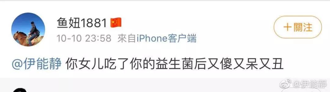 原来伊能静在微博上传一张女儿的照片,就有网友借她卖益生菌一事攻击孩子: