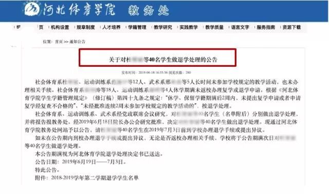 校方给的回复是,这是按照校规规定作出的决定,并且6月18日在学校官网上发了公布,6月26日学院老师通知到学生个人。