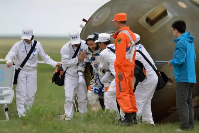 ▲神舟十号成功返回,航天员聂海胜在工作人员搀扶下出舱。