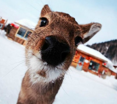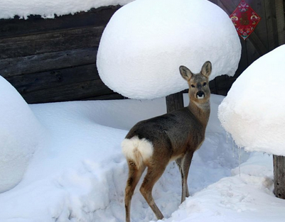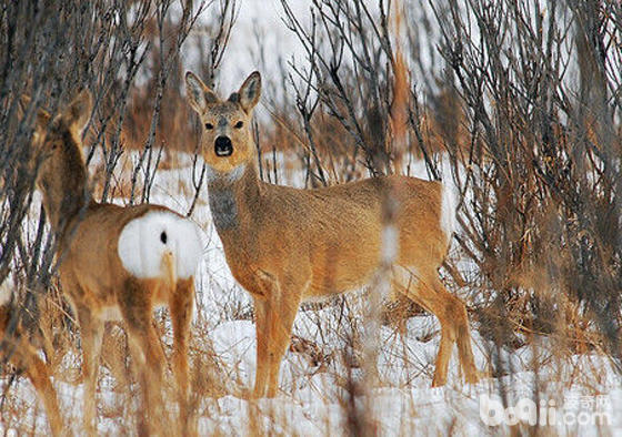 1、发现跑不掉了就把头插进雪里,以为这样自己就躲起来了的狍子。