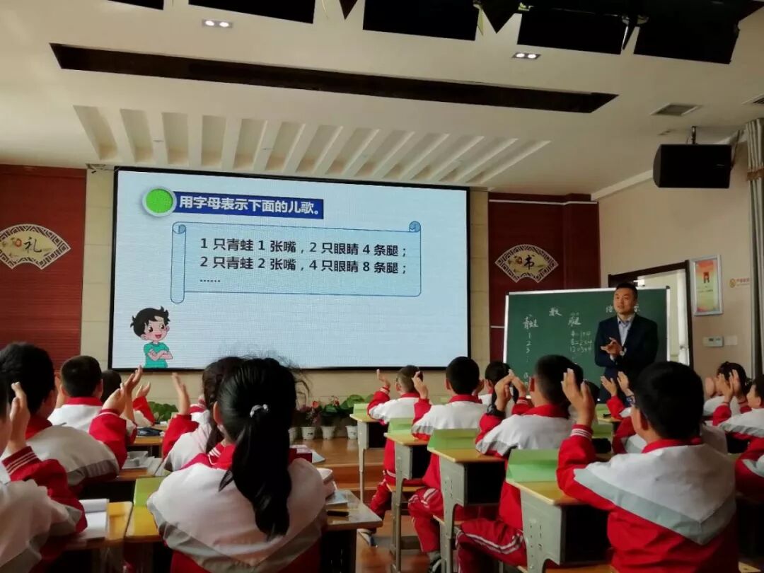 在雁塔区小学数学教学名师带动活动中,张静名师工作室成员龙博望老师带来了一节《字母表示数》。