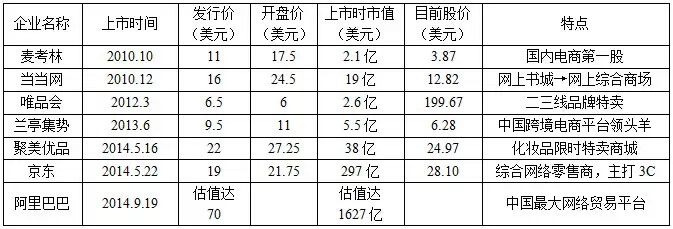 目前国内已成功赴美上市的电商企业如下: