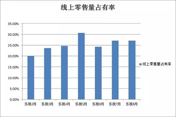 (数据来源:奥维数据监测,2014年2-8月乐视超级电视线上零售量占有率)