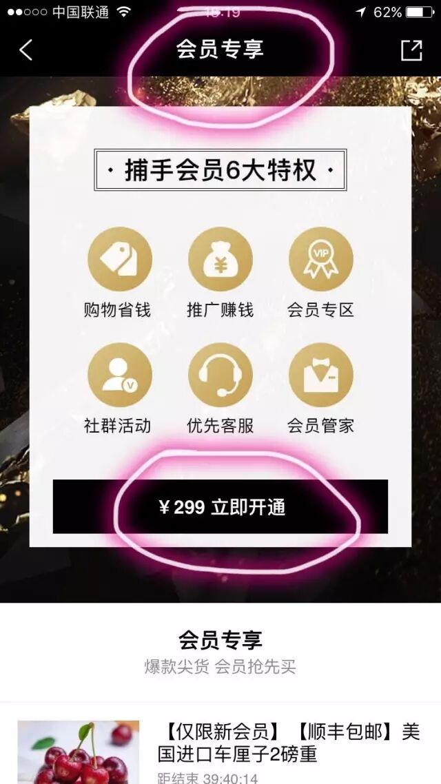 这一模式的突出表现为会员制度。地歌网通过体验聚焦于环球捕手的“会员”相关的培训课程,其中在第一堂小白入门课《选择环球捕手的理由》的课程,千禧联盟的培训师明确提到,环球捕手就是“互联网会员制度+高端美食平台+分享经济”的模式。