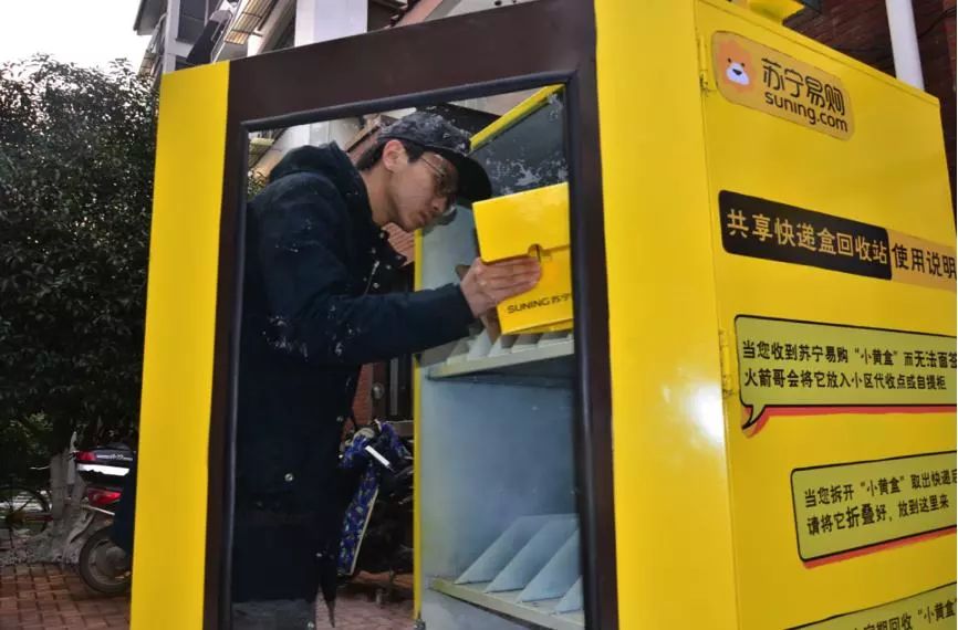 “拆快递就像打开易拉罐,就像收了礼物一般。”小区里的杨阿姨接过苏宁火箭哥手中的“黄盒子”。这个黄盒子是苏宁物流实验室推出的共享快递盒子,在去年双十一中首次亮相,也被成为“网红”快递盒。