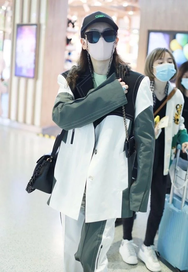 戚薇在服装搭配这方面是十分有自己的个性,大多数都是简约高级,带有一种中性风格。在一件服装上应用三种颜色的时候,下半身的搭配就会受到一定局限性,如果应用其他的色彩就会显得花哨,所以成套的搭配,简约之中带有高级,完全打破了色彩的拘束,在细节方面也更加的完美。搭配的西装裤呈现喇叭的状态,对腿型的修饰作用很好,又有一种复古感,并且裤子的颜色是白色和灰色之间进行过渡,刚好在色彩上有了一定的对应。