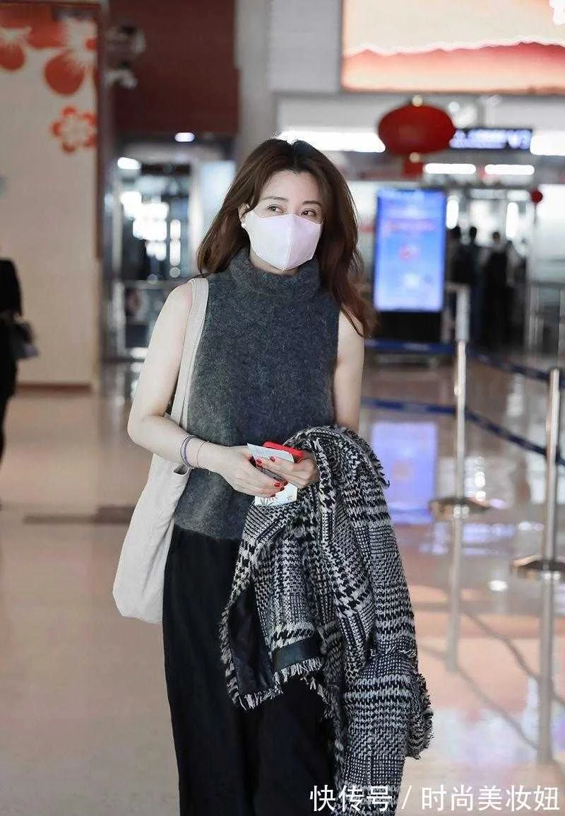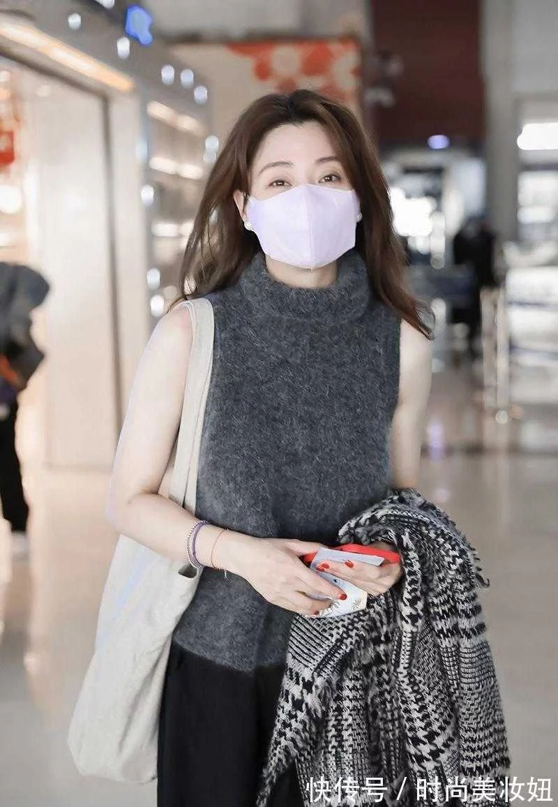 殷桃气质真的没得挑,穿无袖毛衣走机场,挡不住的高级感