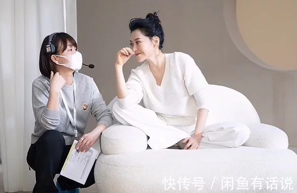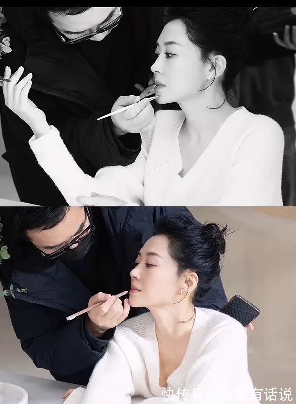 再加上许晴招牌式的带蜜浅笑,整个面部非常显精神,提高了整体的一个亮度,面对化妆师时也是眉眼带笑,整个人的气色显得非常好,也能说明干净整洁的妆容就非常适合这种基础款的穿搭。