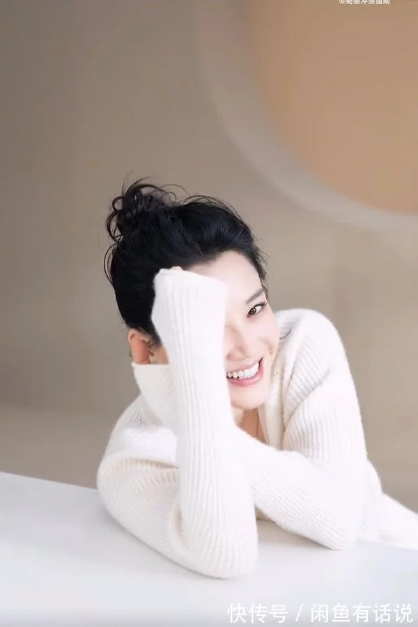 53岁许晴穿初恋毛衣拍写真,扎丸子头梨涡浅笑,这状态阿姨辈少见