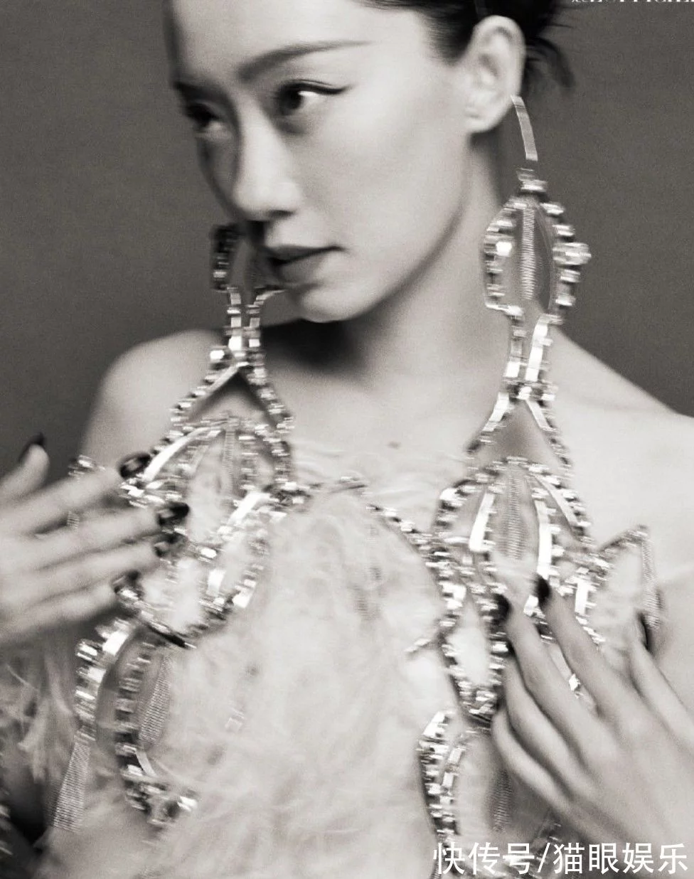 张小斐这次的造型也很大胆,几个大连环耳环拖到腰部,非常夸张,很是明艳,给人一种眼前一亮的感觉。