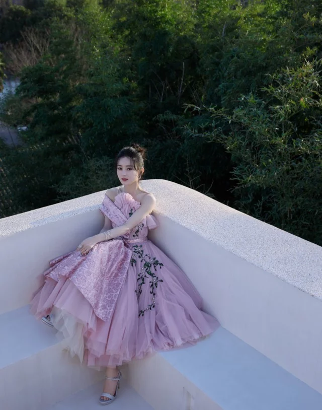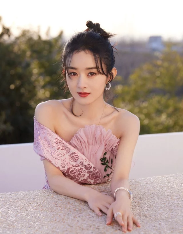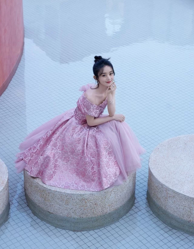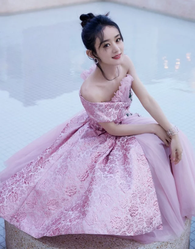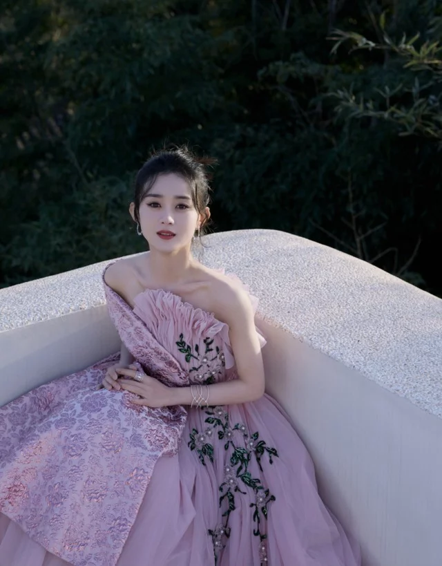 赵丽颖也太好看了,身穿粉色花瓣裙,网友:完全是在逃公主本人