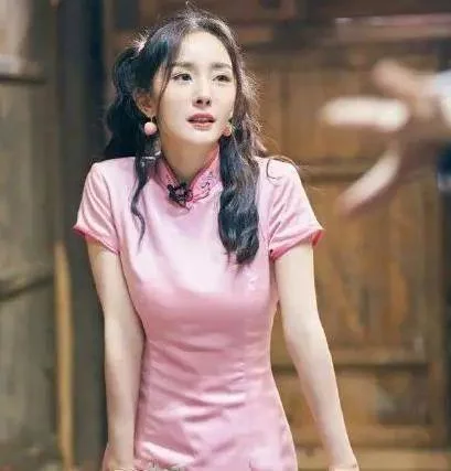 杨幂身材娇小,脸型也小,搭配一身粉色旗袍看起来十分“小家碧玉”,而且从耳坠到发型,杨幂给人的感觉反倒是十分可爱!