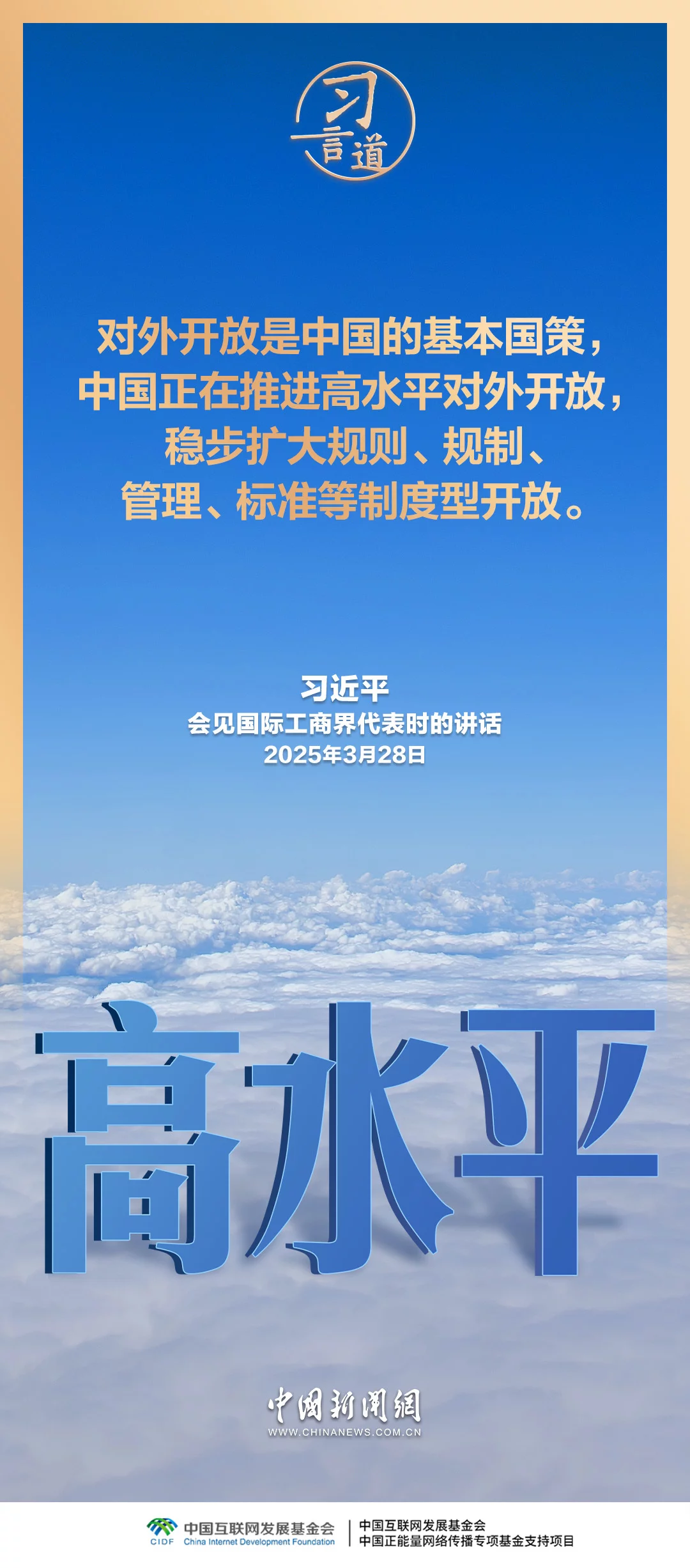 开放是人类文明进步的重要动力,是世界繁荣发展的必由之路。习近平总书记多次就坚定不移推进高水平对外开放发表重要论述,强调“中国对外开放的大门不会关闭,只会越开越大”。
