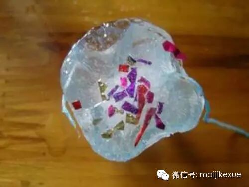 冻冰花的过程就是水遇冷结成冰的过程,如果我们选择不同形状的容器,会出现不同形状的冰花。