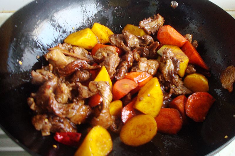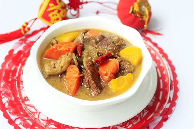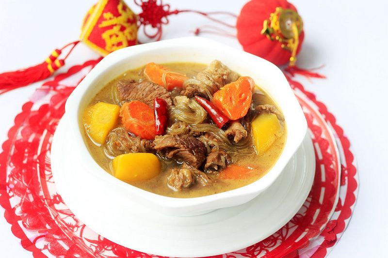 寒冬吃牛肉,有暖胃作用,所以牛肉为寒冬补益佳品,这道菜颠覆了以往红烧牛肉的做法,就用胡萝卜和粉条一起炖出来,汤汁味浓,粉条吸收了牛肉和胡萝卜的肉味和鲜味,还拌有淡淡的辣味,这口味很适合这寒冷的季节。牛肉跟其他猪肉、鸡肉的肉质不同,很多人炖牛肉经常炖的很不好,吃起来嚼不动,硬生生的特柴,要把肉质很硬的牛肉炖好,是需要我们动点脑筋的,要费一点精力和时间的,掌握几个诀窍你会炖的特别好。胡萝卜炖牛肉是非常典型的炖牛肉之一,胡萝卜搭配牛肉非常好的选择。