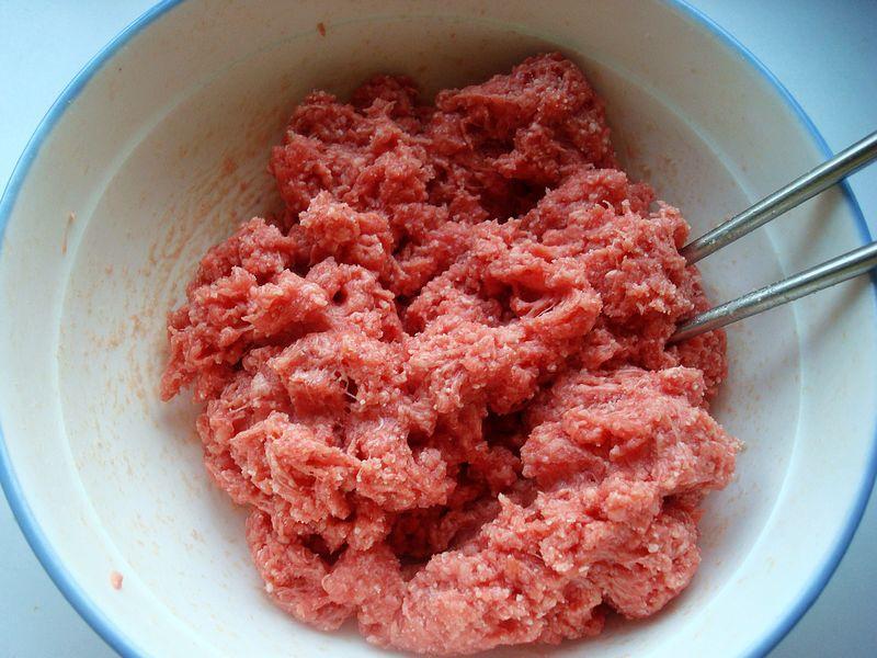 3、牛肉馅化冻,可以用新鲜牛肉最好,姜切末,倒出加花椒粒水(或者高汤这样牛肉不柴,味道鲜美),朝一个方向搅拌上劲