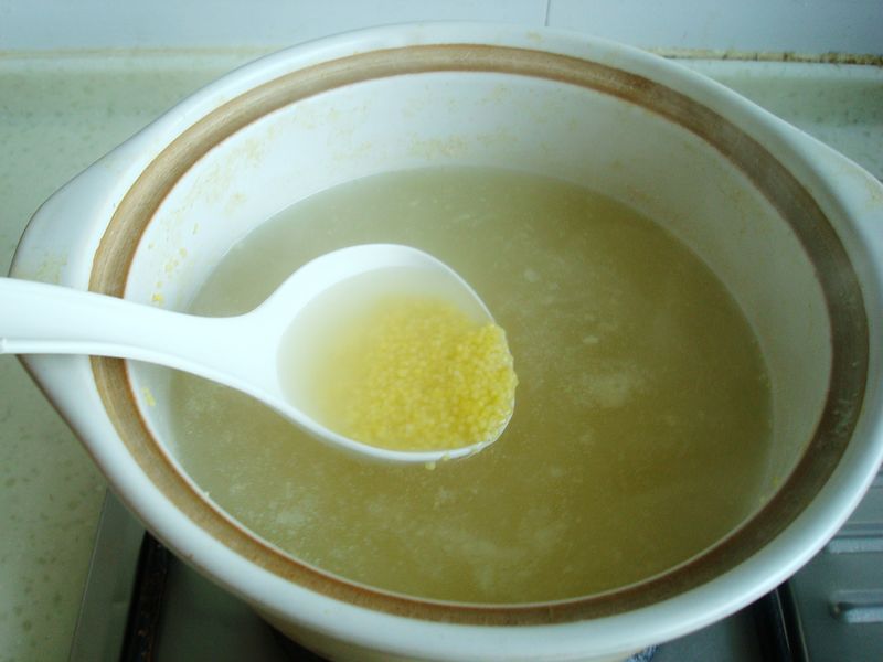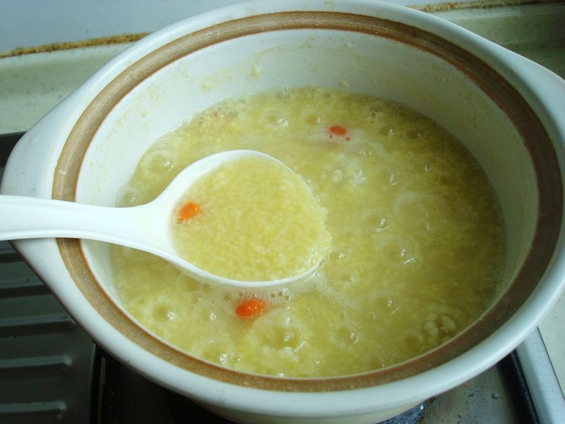 2、小米很好熟,小火煮最好,如果太稠,要不停的搅拌,小心糊锅底