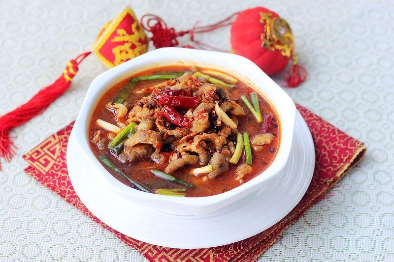 ,做过的人都知道,牛肉的选材很关键,应选择无筋、无皮、无油、无脂的肉为最佳。从部位来看,应选择牛后腿之类的部位的肉最佳。所以,做水煮牛肉比较麻烦,不如直接用肥牛简单些。配菜其实不是很讲究,什么都可以,都主要以叶菜为主,最常配的有黄豆芽,肉底下再垫些生菜、油麦菜,怎么吃都是脆脆的,口感不错,