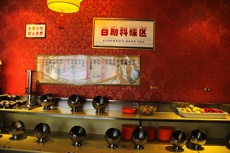 这是自助区,由于我来的早,好多水果和蘸料都还没上齐全,不过,这里还算很多了