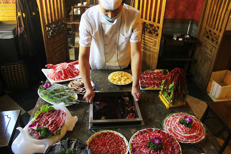 麻辣筷子牛肉,店的新菜品,里面可是纯纯的牛肉条,很有创意的摆盘吧!用辣椒粉、孜然粉等裹住的,下锅煮煮里,看着就红红的彩虹,吃起来真是又鲜又嫩,口感极好,不能错过的美味哟!能摆成这样,也是看出火锅店的经方式了,真是用心在经营!!!