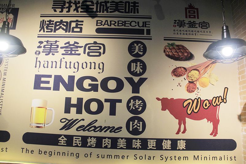 没吃完这家烧烤,看着着墙上的“美味烤肉”,就理解不了美味的真谛,等你吃完“烤全牛”和“澳洲牛排”,才能知道美味的真正含义了!!!!