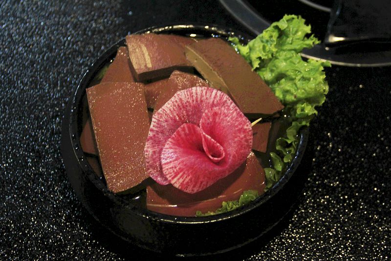 鸭血,在我们的习惯中,都是吃火锅的,可是来这家的吃货们,都是把血块烤着吃,和店里的蘸料一起吃,小伙伴们,来了一定要尝尝,又是另一种血块味道