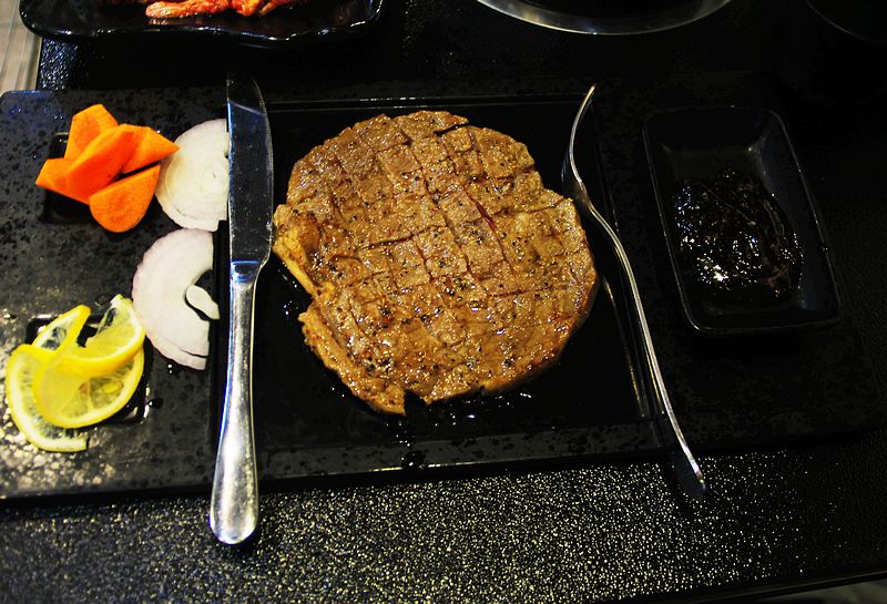 烤好的牛排,如同吃巧克力一般,用两颊轻轻挤一下,牛排中的肉汁就会喷到嘴中。