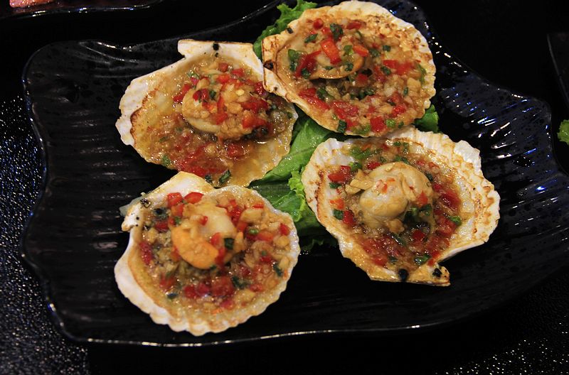 扇贝,想必小伙伴们都吃过,这是熟的,可以直接吃,不用烤了,看着红红绿绿的,特别爽口开胃吧
