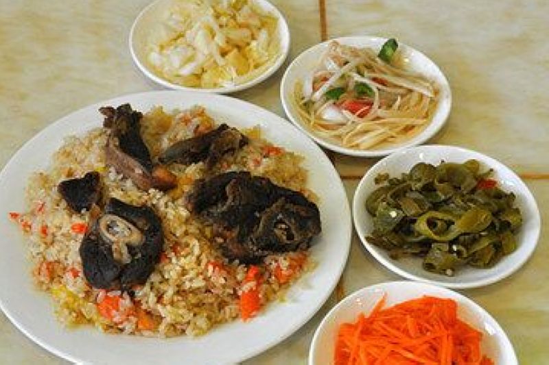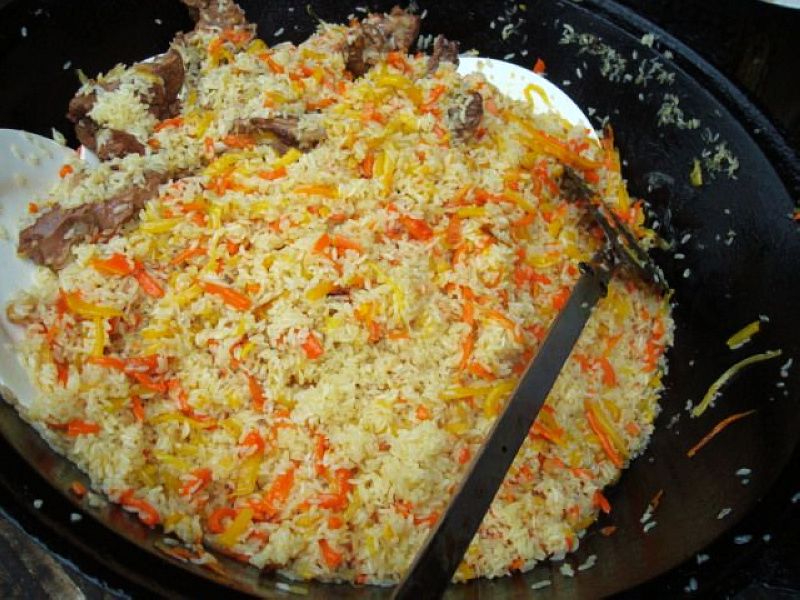 在新疆有一种米饭叫做抓饭,这是新疆的人的主食之一,除了拉条子,抓饭就是老大了。新疆的抓饭种类很多,就目前有几十种做法。不过最常见的大众爱吃,并且常吃的抓饭就那么几种,大家对抓饭的评定标准也都差不多。一份好吃的抓饭一般都是米粒颗颗饱满,色泽金黄透亮,粒粒分明,劲道耐嚼,肉香而不腻,胡萝卜、黄萝卜绵软香甜,配搭小菜清新脆爽耐人回味。