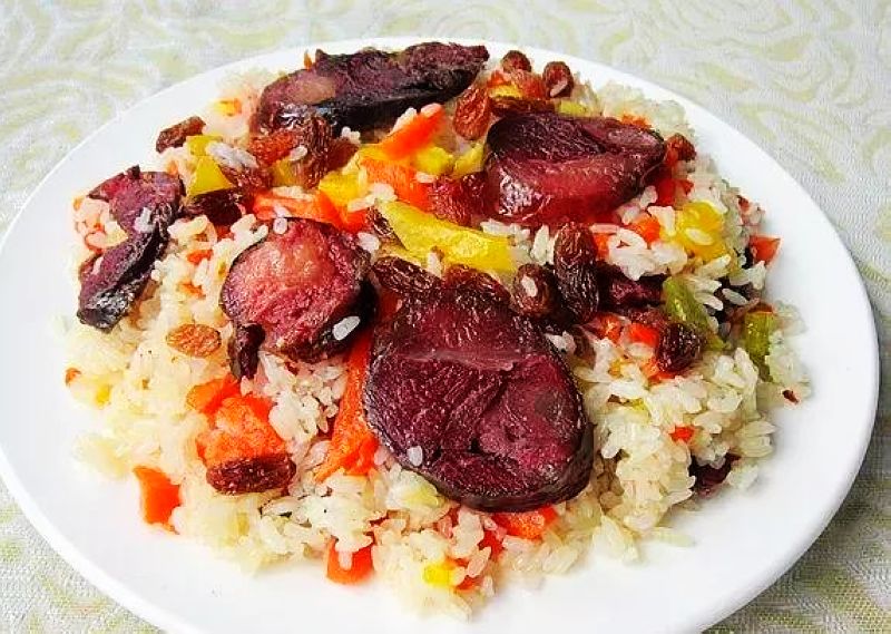 第九种:风干肉抓饭,又被分为(风干牛肉、风干羊肉、风干马肉、 风干鹅肉)等,这种抓饭肉都比较劲道特别有嚼劲,米饭和常见的一样,也是粒粒分明香浓,味道属于风干肉的味道,现在不少抓饭都有这种抓饭,价格比普通的抓饭要贵一些。