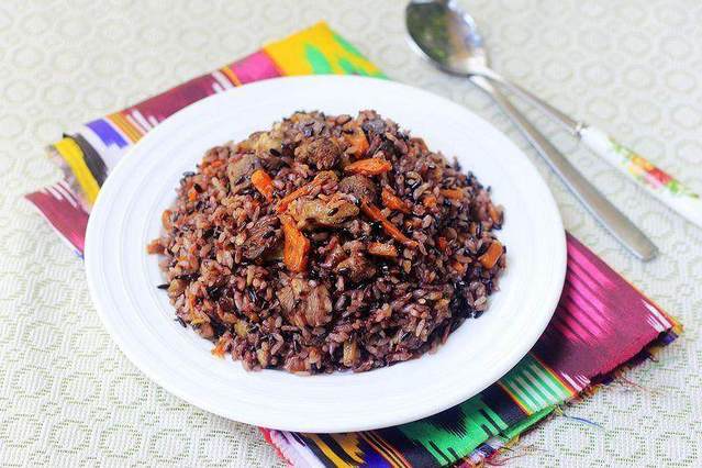 第八种:黑抓饭,这是新型的抓饭品种,因为米饭是黑色的,完全颠覆以往传统抓饭的颜色,也是粒粒香浓,黑抓饭可不是酱油上色,它是皮牙子稍微煸炒过火候,但不能让皮牙子糊透。用炒过的皮牙子给肉和大米上色,受到很多爱尝新口味人的热捧。
